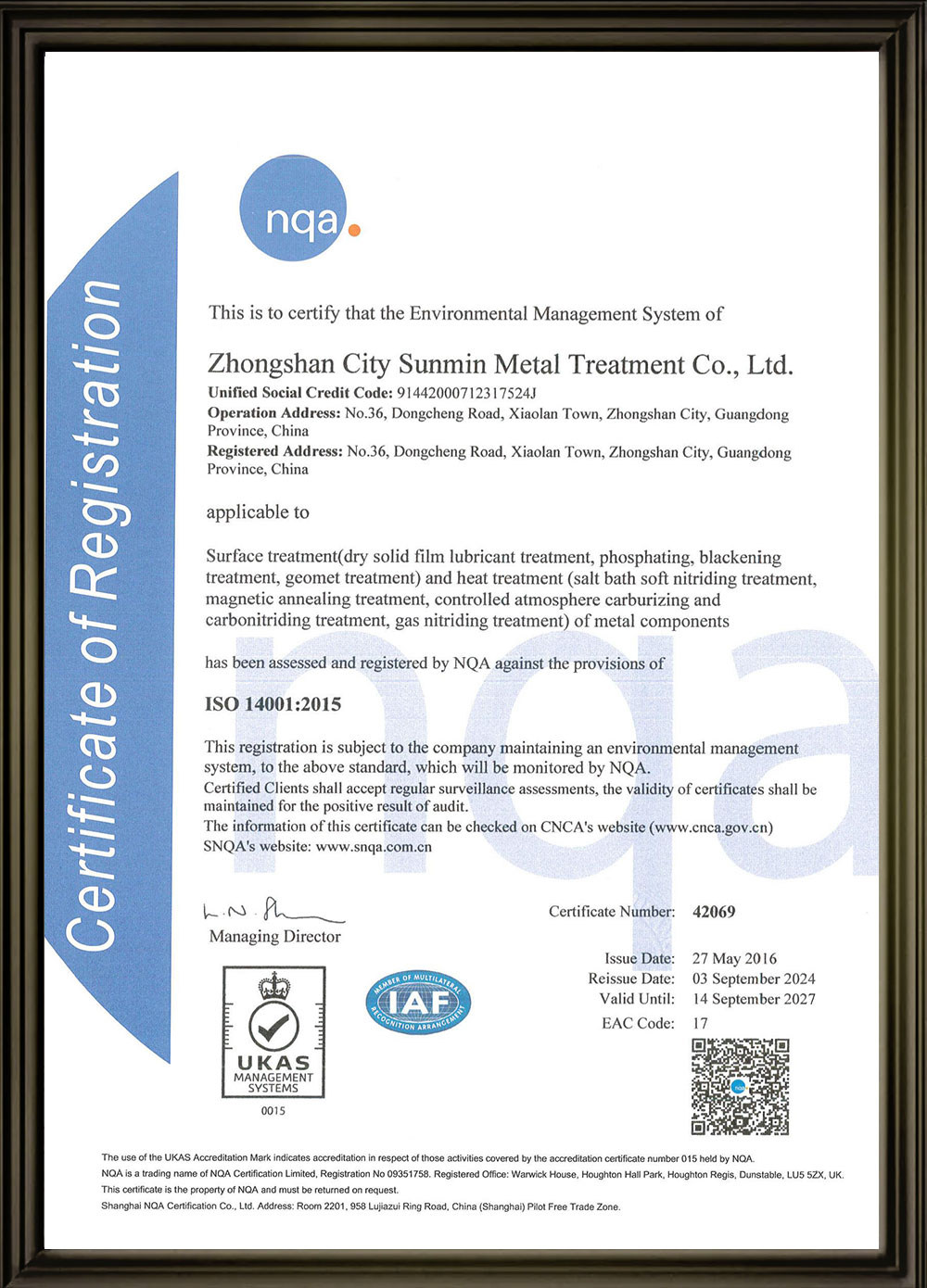 • ISO 14001:2015認(rèn)證